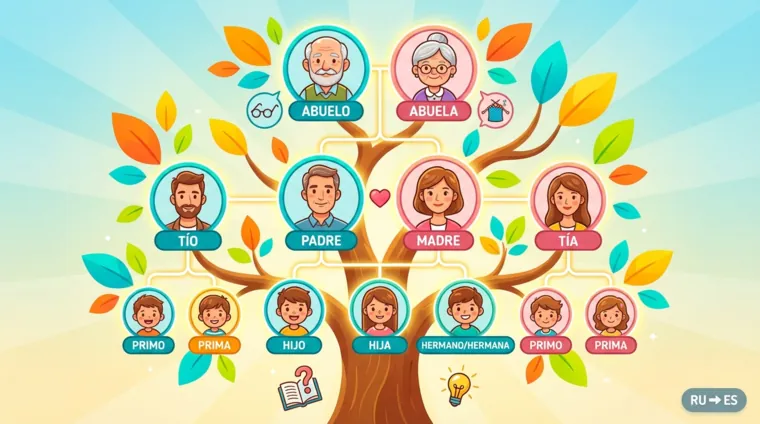 - el/la tío/a (дядя/тётя), el/la primo/a (двоюродный брат/сестра)