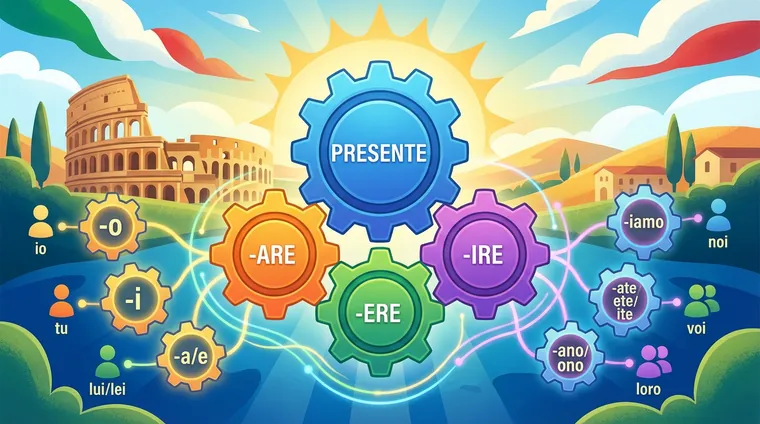 Глагол "essere" (быть) — второй столп итальянской грамматики. Его спряжение в настоящем времени (Presente Indicativo) также совершенно неправильное и требует отдельного запоминания: