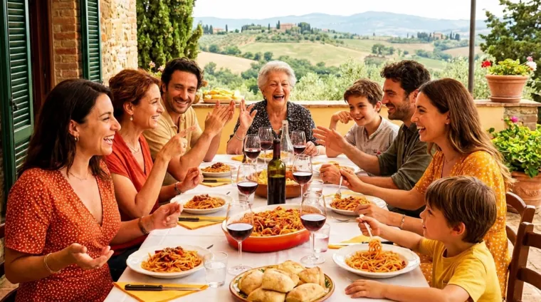 Семейные обеды в выходные дни (pranzo della domenica) — священный ритуал, объединяющий несколько поколений. Эти встречи не просто трапезы, но механизм поддержания родственных отношений, передачи традиций и культурных ценностей. За обильно накрытым столом ведутся обсуждения всех важных событий, принимаются семейные решения, разрешаются конфликты. 👨👩👧👦