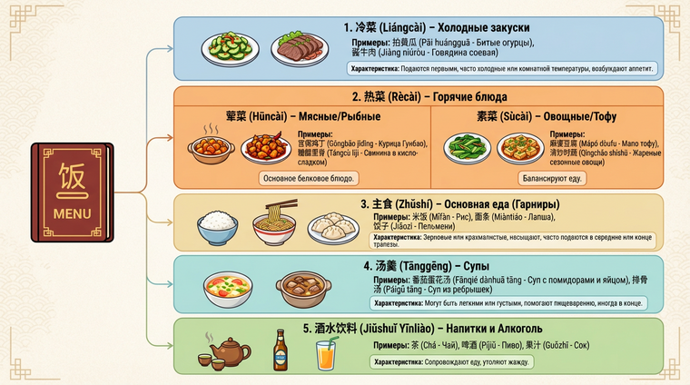 Китайское меню — это не хаотичный список блюд, а строго структурированный документ. В традиционных ресторанах меню делится на разделы по способу приготовления, типу ингредиентов и температуре подачи. Понимание этой логики даёт вам контроль над заказом и позволяет избежать ситуации, когда вы случайно заказали три супа и ни одного основного блюда.