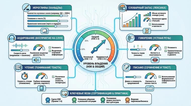 Изучение китайского языка — задача, требующая железной дисциплины и точного понимания собственного развития. Многие бросают на полпути именно потому, что не видят конкретных результатов своих усилий. Вы тратите месяцы на иероглифы, слушаете аудио, зубрите тоны — но как понять, что движетесь вперёд, а не топчетесь на месте? Без чётких метрик и системы контроля ваши занятия превращаются в хаотичное блуждание. Эта статья даст вам инструменты для объективной оценки языковых навыков и покажет, как превратить туманные ощущения «вроде что-то понимаю» в измеримые достижения.
