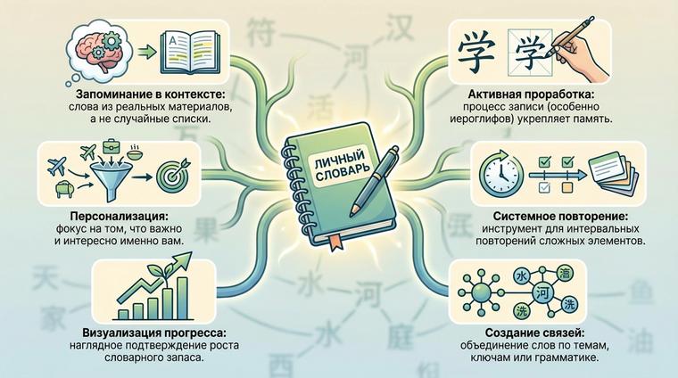 Личный словарь по китайскому — это не просто список слов, а ваша индивидуальная карта языка, отражающая цели, прогресс и контекст изучения. Правильно организованный, он превращает хаотичное накопление лексики в управляемый процесс с измеримыми результатами. Выберите формат, который соответствует вашему стилю обучения, используйте эффективные методы организации иероглифов, интегрируйте словарь в ежедневную практику — и увидите, как словарный состав растёт, а уверенность в языке укрепляется. Китайский перестаёт быть набором непонятных символов и становится инструментом коммуникации, который вы контролируете.