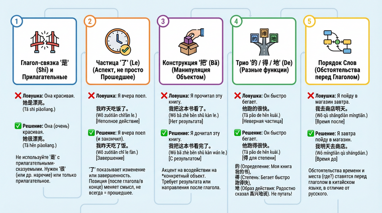Изучение китайского языка сопряжено с рядом специфических трудностей, которые систематически приводят к ошибкам даже продвинутых студентов. Грамматические правила китайского радикально отличаются от индоевропейских языков, что создаёт предсказуемые «слепые зоны» в понимании структуры предложения.