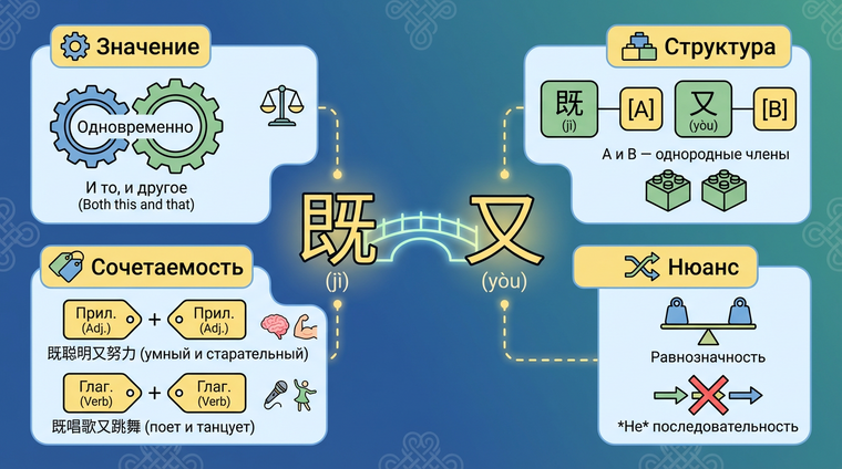 Освоив эти правила, вы сможете использовать 既…又… естественно и без ошибок, что значительно улучшит качество вашей китайской речи.