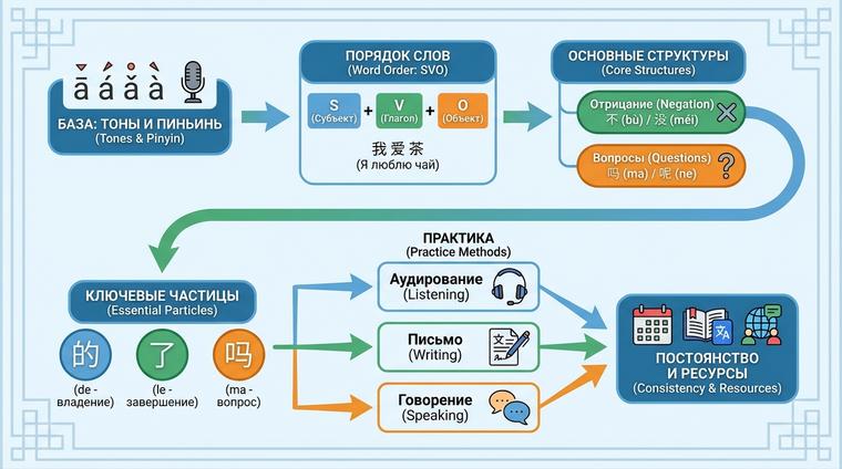 Первое, что нужно понять: китайская грамматика — это не русская. Здесь нет падежей, родов, спряжений глаголов. Зато есть жёсткий порядок слов, система служебных частиц и модальных глаголов, которые меняют смысл предложения. Начинать нужно с базовой структуры предложения — подлежащее, сказуемое, дополнение (SVO). Это основа, на которой строится всё остальное.