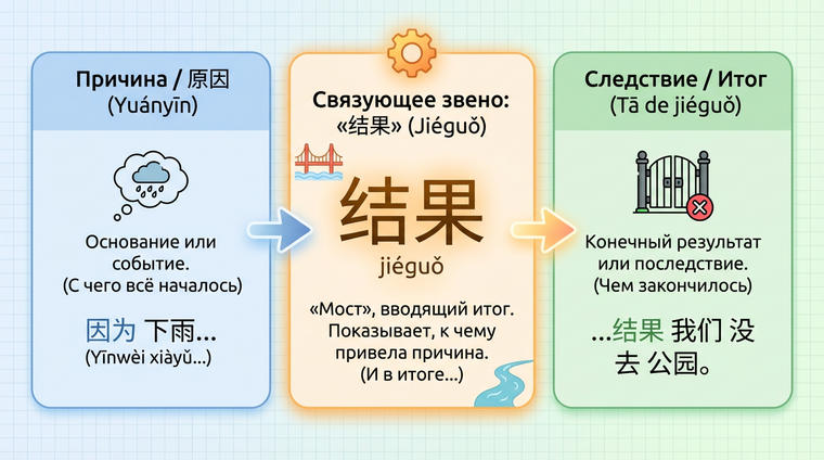 Китайский язык поражает своей логичностью и структурированностью, особенно когда дело касается выражения причинно-следственных связей. Слово 结果 (jiéguǒ) — это не просто "результат" в словарном переводе, это мощный грамматический инструмент, который превращает простое повествование в последовательную цепочку событий. Если вы до сих пор избегали использовать эту конструкцию или применяете её неуверенно, значит, вы лишаете свою речь половины выразительности. Разберёмся, как китайцы выстраивают логику высказываний и почему без 结果 ваш китайский останется на уровне разговорника для туристов.