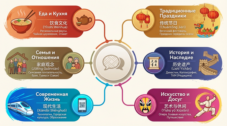 | Культурная тема | Ключевые понятия на китайском | Почему важна в беседе |