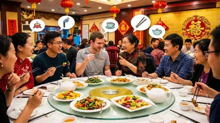Тосты и алкоголь. Тосты — важная часть банкета. Хозяин произносит первый, затем слово передаётся гостям по старшинству. Если вас попросили сказать тост, будьте краткими и позитивными. Уместные темы: успех сотрудничества, уважение к партнёрам, процветание компании. «干杯» (gānbēi) означает «выпить до дна», но если вы не пьёте алкоголь или не можете выпить много, используйте «随意» (suíyì) — «на ваше усмотрение» — и отпейте немного. Это не будет воспринято как оскорбление, особенно если вы заранее объясните причину (здоровье, религия, вождение).