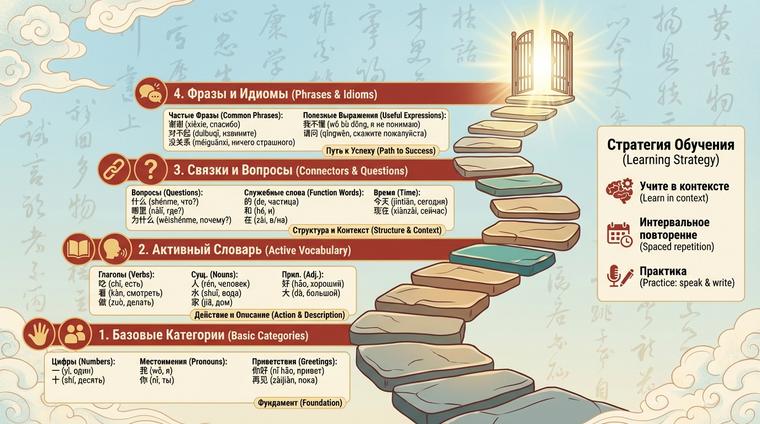 Лексический минимум — это не абстрактная академическая концепция. Это ваш рабочий инструмент, который либо служит вам, либо лежит мёртвым грузом. Уровни A1–B2 структурированы так, чтобы каждое слово, которое вы учите, имело практическое применение. Не гонитесь за количеством — гонитесь за качеством усвоения. Лучше знать 300 слов железобетонно, чем 3000 приблизительно. Китайский язык не терпит халтуры. Он требует дисциплины, системности, настойчивости. Но если вы пройдёте этот путь честно, от A1 до B2, вы получите не просто навык — вы получите доступ к культуре, истории, мышлению полутора миллиардов людей. Это ли не достойная награда за потраченные усилия? 🎯