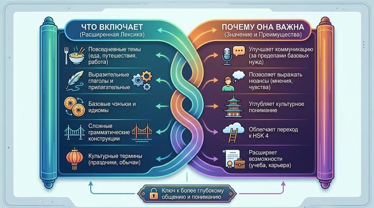 Расширенная лексика HSK 3 — это не просто список из 600 слов для галочки в сертификате. Это инструмент, открывающий доступ к реальному общению на китайском языке, возможность читать простые те