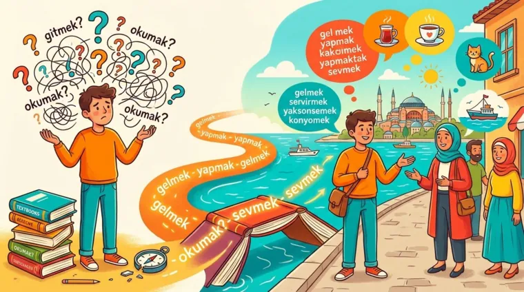 Турецкий язык — ворота в удивительный мир, где Восток встречается с Западом. Погрузиться в его изучение с нуля может каждый, независимо от языкового опыта. Благозвучный и логичный, турецкий подчиняется чётким правилам, что делает его идеальным для тех, кто ценит системность. Отсутствие грамматического рода, фиксированное ударение и принцип "что слышишь, то и пишешь" — всё это превращает изучение турецкого в увлекательное путешествие, где каждый новый шаг открывает не только язык, но и богатейшую культуру на стыке континентов.