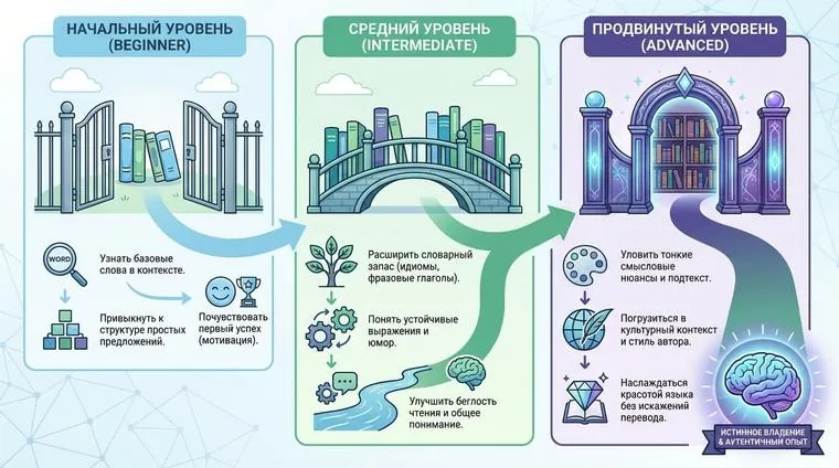 - Выбирайте произведения по силам: начинайте с коротких рассказов, постепенно переходя к более крупным литературным формам.
