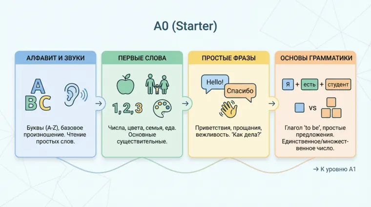 Тот, кто знает английский на уровне A0, не знает английского. Ему совершенно незнакома лексика, он не умеет читать и писать на английском, не понимает английскую речь на слух (иными словами, знает по-английски только «Бонжур» и «Чао»).