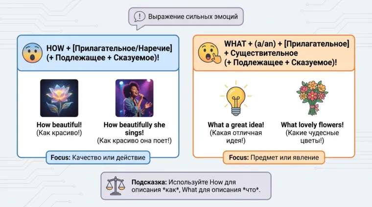 Мы рассмотрим два типа восклицаний: те, которые начинаются со слова how («как») и те, которые начинаются словом what («что»).