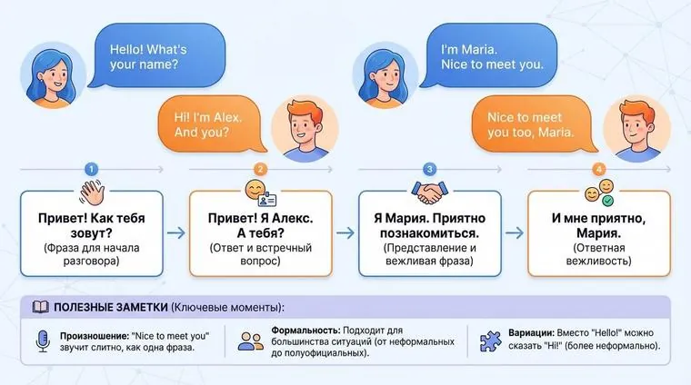Bob: Nice to meet you, Alice. I'm Bob. (Приятно познакомиться, Алиса. Я Боб.)