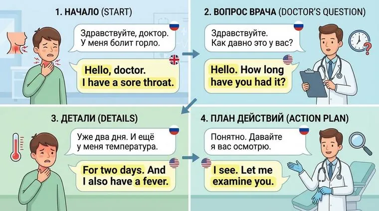 Doctor: Hello, how can I help you today? (Здравствуйте, чем могу помочь сегодня?)