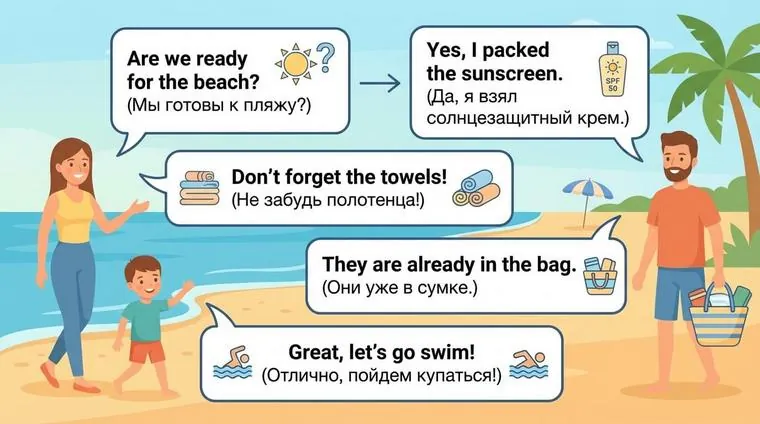 Emily: What should we pack for the sea vacation? (Что нам нужно упаковать для отпуска на море?)
