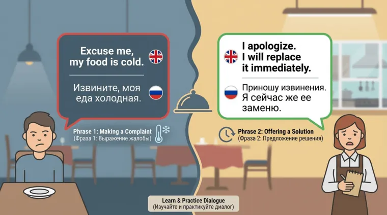 Customer: Excuse me, but the food is cold. (Извините, еда холодная.)