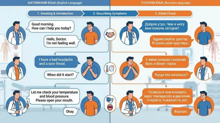 Doctor: Hello, how can I help you today? (Здравствуйте, чем могу помочь вам сегодня?)