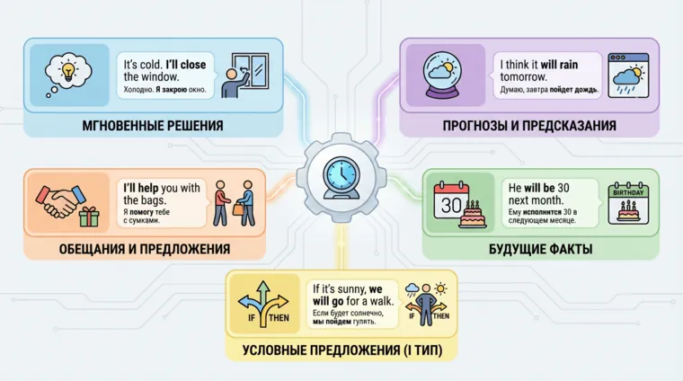 Среди видо-временных форм английского глагола время Future Simple является одним из самых часто используемых. В каких же случаях употребляется простое будущее время? Рассмотрим поподробнее.