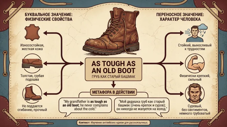 The old seaman was as tough as an old boot and never showed his feelings at all. |