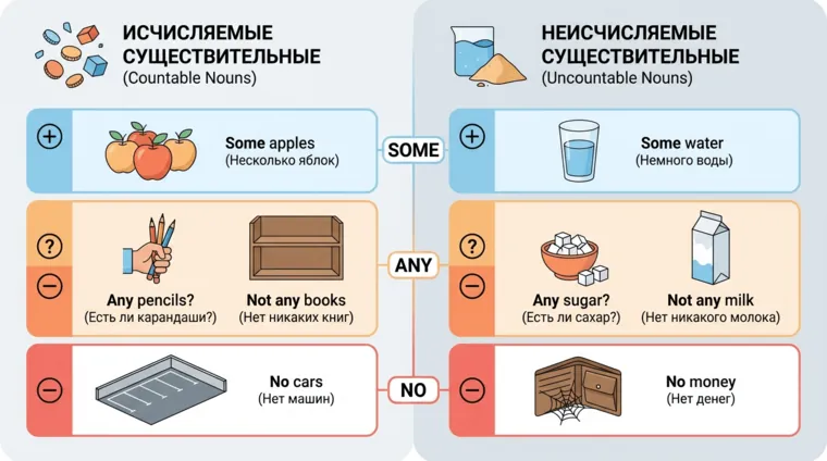 Some и any в разных предложениях: таблица