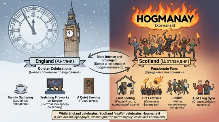 Если присмотреться, как отмечают Новый год в Англии, нетрудно заметить: шотландцам англичане явно завидуют и даже переняли у них песню, ставшую британским гимном празднику.