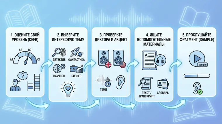 Шаг 1: Включите аудиокнигу и прослушайте небольшой отрывок (длительностью не более 5 минут).