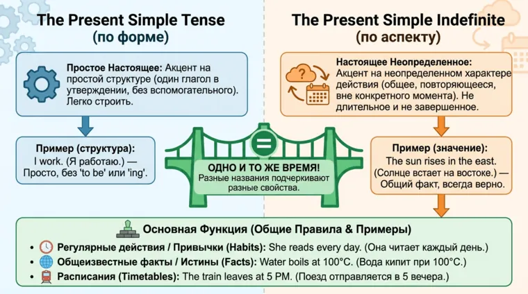 Для начала давайте поймем, почему при изучении английского языка, а также в лингвистической литературе the Present Simple Tense (настоящее простое время) часто могут называть the Present Simple Indefinite (настоящее простое неопределенное) и есть ли разница между этими понятиями.