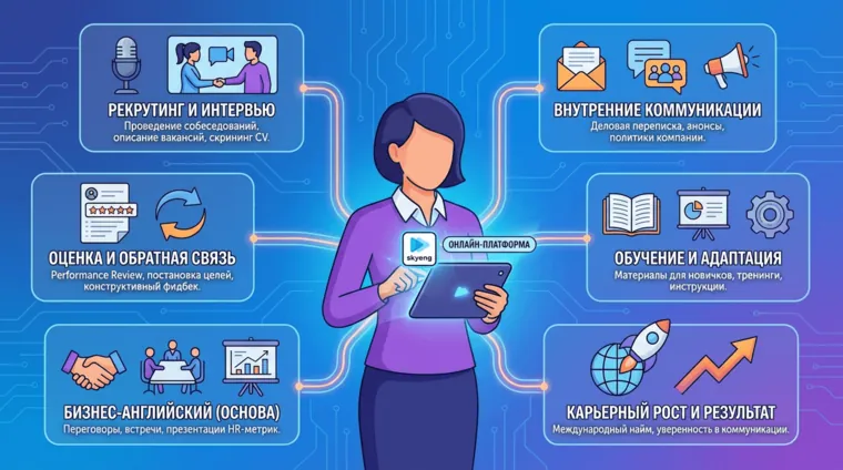 Курс учит решать повседневные задачи HR-специалиста с использованием английского языка. На занятиях разбираются такие темы, как: