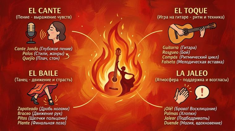 Знание этих терминов позволит вам не только понимать, что происходит на сцене, но и участвовать в диалоге с артистами. Фламенко — это живое искусство, где граница между исполнителем и зрителем размыта. Ваши правильно поданные возгласы в нужный момент становятся частью представления, подпитывают артиста энергией. 🔥