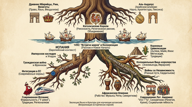 Испанский язык объединяет миллионы людей на разных континентах, но стоит вам оказаться в Мадриде, а затем в Мехико — и вы почувствуете разницу буквально в воздухе. Это не просто разные акценты или предпочтения в еде. Это два мира, выросших из одного корня, но развивавшихся столетиями по своим траекториям. Испания и Латинская Америка говорят на одном языке, но танцуют под разную музыку, готовят по разным рецептам и празднуют жизнь совершенно иначе. Если вы учите испанский, планируете путешествие или просто хотите понять, почему испанец и аргентинец могут спорить о том, как правильно произносить "ll", эта статья для вас.
