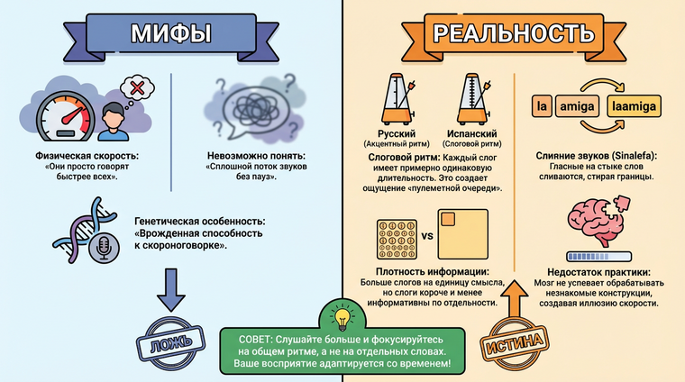 Почему испанская речь кажется такой быстрой: мифы и реальность