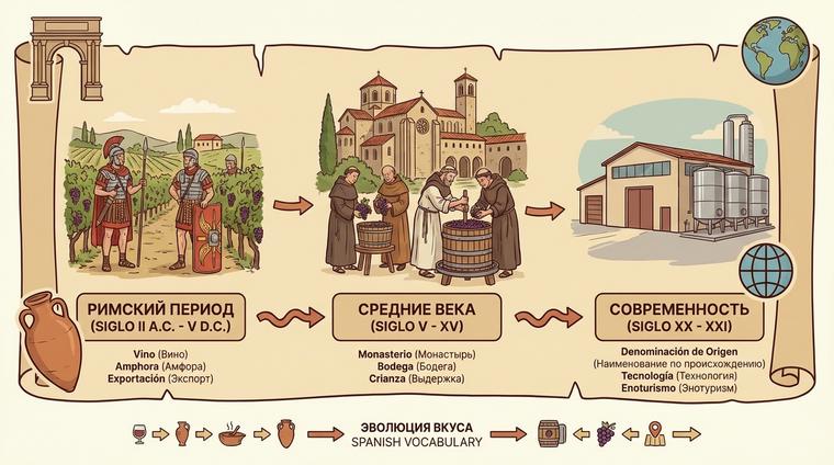 Испанское виноделие началось задолго до того, как кто-то додумался назвать эту территорию Испанией. Финикийцы завезли сюда виноградную лозу около 1100 года до н.э., но настоящий размах производство приобрело при римлянах. Именно Римская империя превратила Иберийский полуостров в один из ключевых винных центров античного мира — амфоры с испанским вином отправлялись в Рим, Галлию и даже Британию. Археологические находки в регионе Таррагона подтверждают: местные виноградники снабжали половину империи.