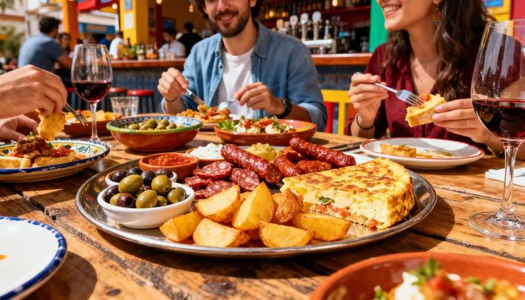 Тапас и вино — ещё одна важная часть испанской культуры. Tapear (ходить по барам и есть тапас) — национальное времяпрепровождение, особенно в Андалусии, Стране Басков и Мадриде. При заказе небольшого бокала вина (caña de vino) в некоторых регионах вам бесплатно принесут тапу — маленькую закуску. Это может быть что угодно: от оливок до хамона. В Гранаде культура бесплатных тапас особенно развита — чем больше напитков вы заказываете, тем сложнее становятся закуски.