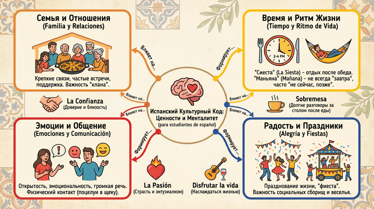 Кстати, если вы действительно хотите понять испанцев, начните с языка — не из разговорника, а настоящего. Онлайн-школа Skyeng предлагает курсы испанского языка, где вас научат не просто говорить, а чувствовать культуру: от тонкостей делового этикета до понимания, почему "mañana" — это философия, а не просто "завтра". Занятия с носителями, гибкий график и реальные кейсы — то, что превратит вас из туриста в человека, который действительно понимает Испанию. 🔥