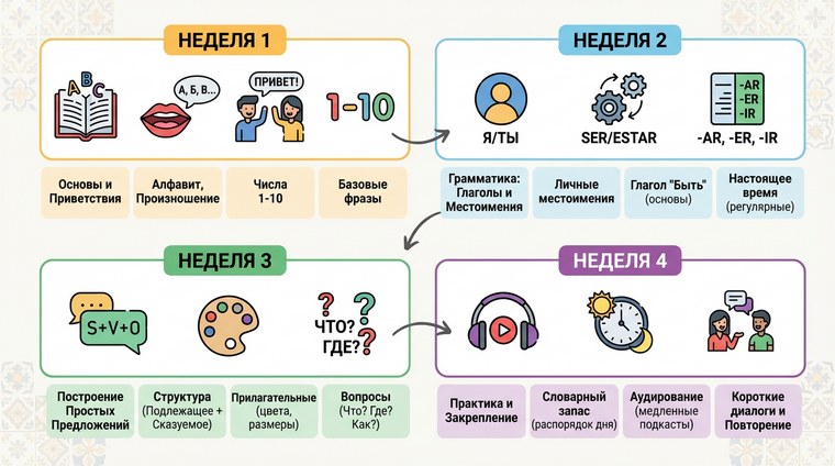 Решили выучить испанский за месяц? Смелая затея, но вполне реальная, если подойти к делу с умом. Забудьте про хаотичное зубрёжку слов из разговорника и бесцельное листание приложений — без чёткого плана вы просто потеряете время и мотивацию. Испанский язык охватывает более 500 миллионов носителей по всему миру, и базовый уровень для туристического общения или начальной адаптации можно освоить за четыре недели интенсивной работы. Главное — структура, последовательность и ежедневная практика. Сейчас разберём пошаговый месячный план, который превратит вас из полного новичка в человека, способного представиться, заказать кофе и поддержать простой разговор на испанском. Никакой воды — только конкретные действия и результаты.