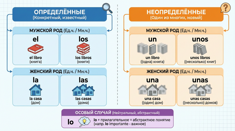 Артикли в испанском языке — это не капризная прихоть лингвистов, а система навигации, которая помогает понять, о чем именно вы говорите. В русском мы обходимся без артиклей, поэтому для нас это новая концепция. Представьте, что артикль — это дорожный знак перед существительным, который показывает: говорим мы о конкретном предмете или о любом представителе этой категории 🚦