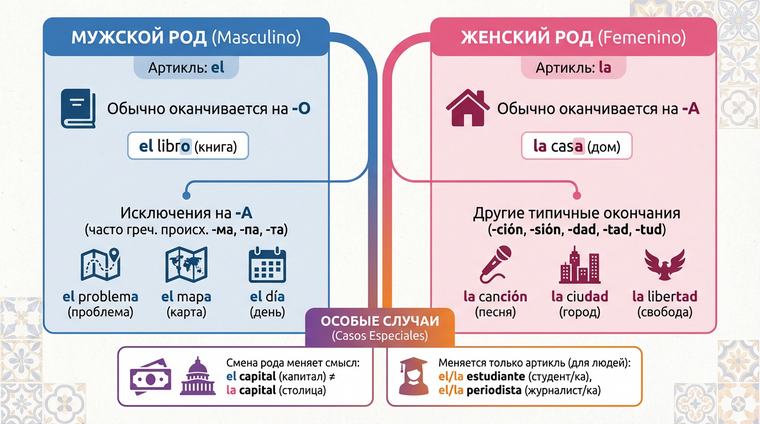 В испанском языке каждое существительное обладает грамматическим родом — мужским (masculino) или женским (femenino). Это не прихоть филологов, а структурный элемент языка, влияющий на согласование прилагательных, артиклей и местоимений. Нет, испанцы не считают стол «мужчиной», а книгу «женщиной» — род здесь условен и не связан с полом объекта (хотя иногда совпадает).