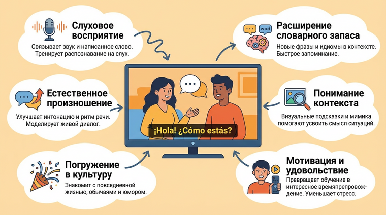 Скажу прямо: если вы до сих пор учите испанский только по учебникам, вы застряли где-то в прошлом веке. Сериалы с субтитрами — это мощнейший инструмент языкового обучения, и вот почему это работает на нескольких уровнях одновременно.