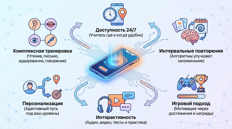 Мобильные приложения изменили подход к изучению языков. Вместо тяжёлых учебников и жёсткого графика занятий вы получаете доступ к урокам в метро, очереди или во время обеденного перерыва. Испанский — язык с относительно прозрачной грамматикой и фонетикой, что делает его идеальным кандидатом для цифрового обучения. Приложения используют адаптивные алгоритмы, которые подстраиваются под ваш темп и уровень знаний.