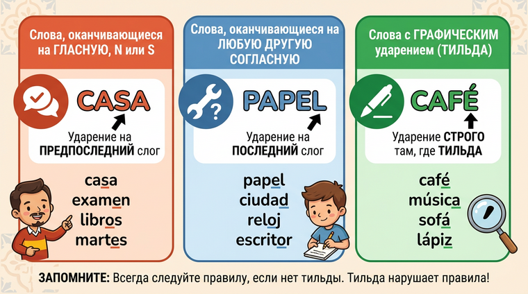 В испанском языке существует три железных правила ударения, которые работают в 95% случаев. Остальные 5% — это исключения, которые обозначаются графическим акцентом. Звучит просто? Так и есть. Главное — запомнить логику и не пытаться переносить правила из русского или английского. Испанская акцентуация — это система, где каждое правило имеет чёткие границы.