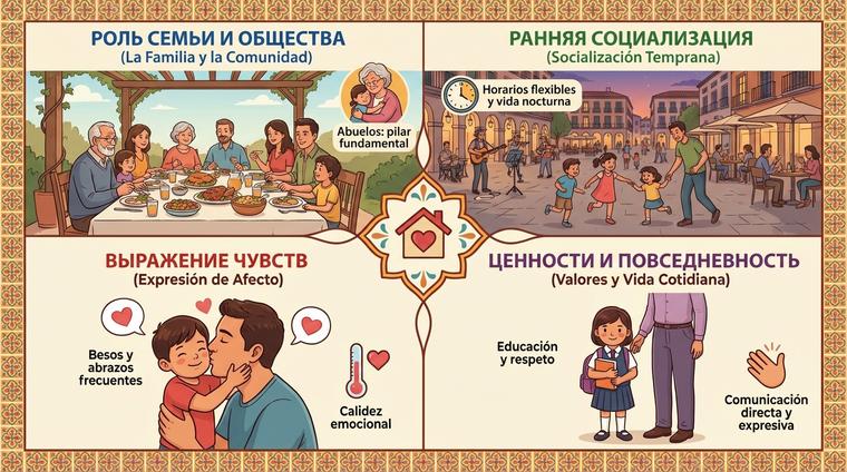 Ключевые LSI-слова, описывающие испанский подход: "convivencia" (сосуществование), "respeto" (уважение), "familia" (семья), "comunidad" (сообщество). Эти понятия пронизывают всю систему детской социализации и формируют фундамент испанского характера.