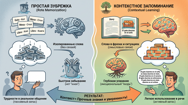 Почему контекстное запоминание испанской лексики эффективнее простой зубрежки