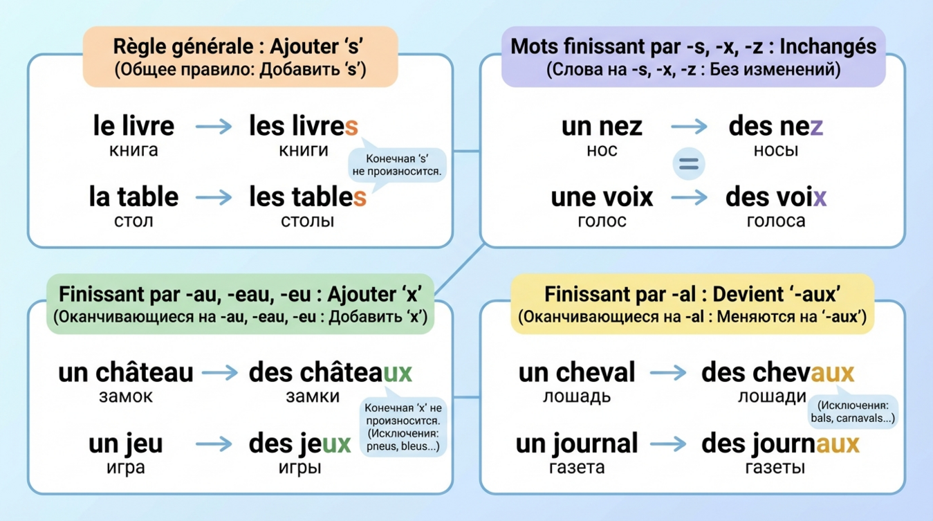 Основные правила образования множественного числа во французском