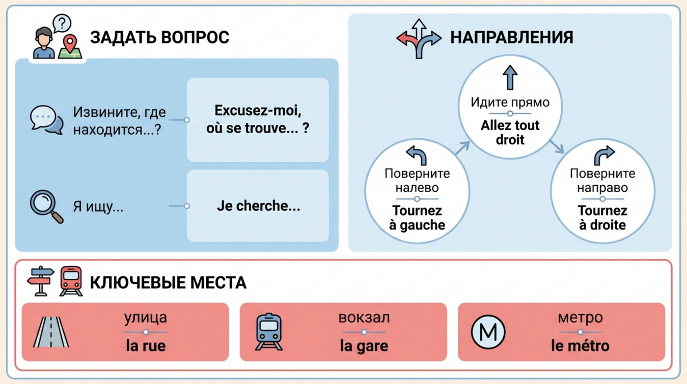 Представьте: вы только что сошли с поезда на вокзале Гар-дю-Нор в Париже, GPS не работает, карта разрядилась, а до отеля нужно дойти за полчаса. Вокруг спешащие парижане, кафе, улочки — и полное непонимание, куда двигаться. Именно в такие моменты знание нескольких ключевых фраз на французском языке превращается из «было бы неплохо» в абсолютную необходимость. Умение спросить дорогу — это не просто лингвистический навык, это ваша свобода передвижения, уверенность в незнакомом городе и возможность не выглядеть потерянным туристом. Забудьте про стереотипы о надменных французах: правильно заданный вопрос откроет вам двери к помощи и даже дружелюбию местных жителей. 🗺️