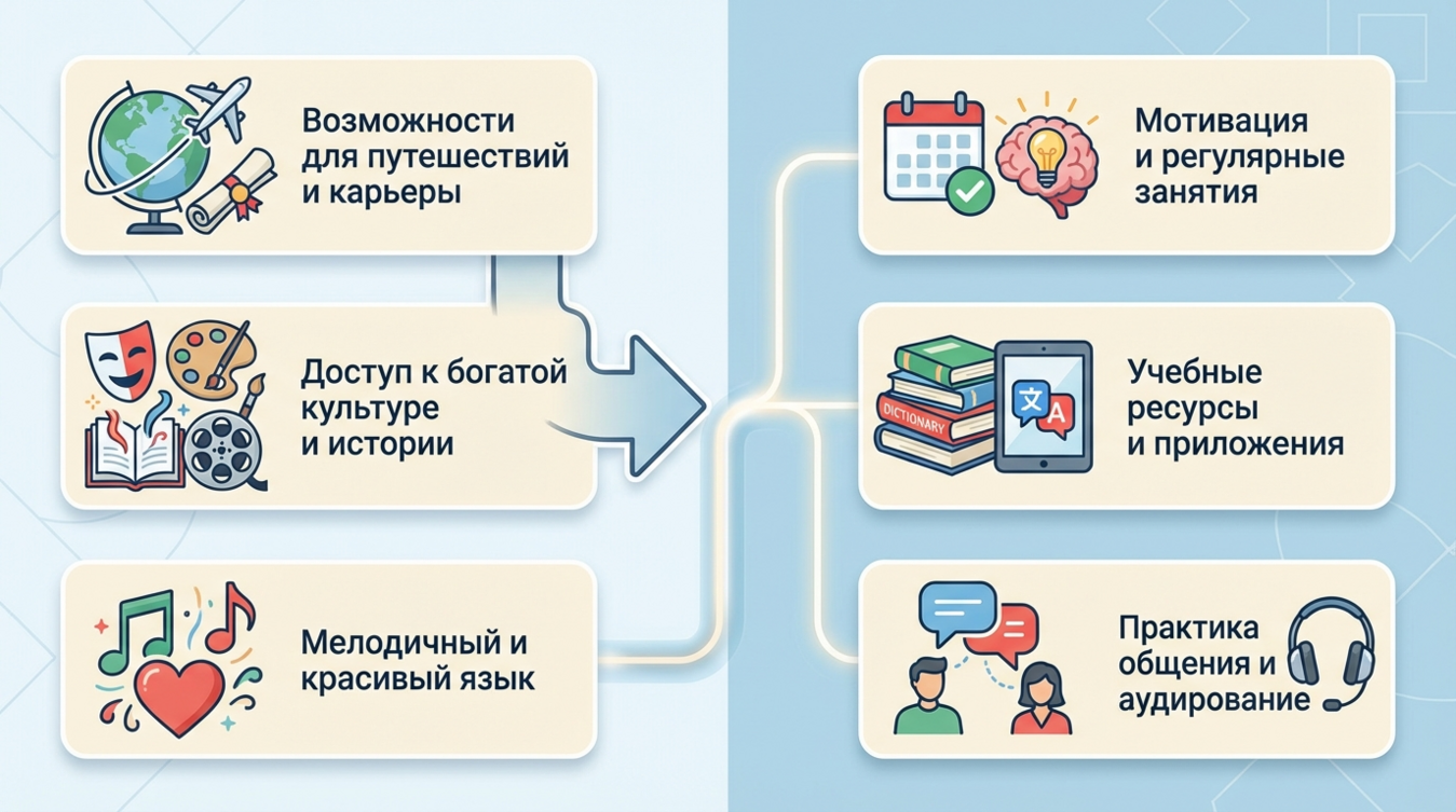 Французский язык открывает двери в мир утончённой культуры, деловых контактов с европейскими партнёрами и путешествий без языкового барьера. Но большинство начинающих сдаются уже через месяц, столкнувшись с непривычной фонетикой и грамматическими конструкциями. Проблема не в сложности языка — а в отсутствии системного подхода. Я преподаю французский более десяти лет и знаю точно: любой взрослый человек способен освоить язык с нуля до уровня уверенного общения за 8–12 месяцев. Для этого нужен чёткий план, правильные инструменты и понимание механики обучения. Эта статья даст вам именно такой план — без воды и мотивационных речей, только проверенная методика.