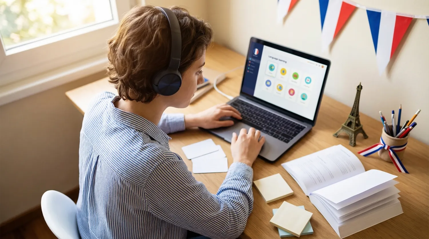 Чтение: адаптированные книги серии "Lire en français facile" или новости на сайте 1jour1actu (для детей, но идеальны для уровня A1–A2). Техника экстенсивного чтения: не переводите каждое слово, старайтесь уловить смысл из контекста. Выписывайте только слова, встретившиеся трижды — это частотная лексика, которая реально нужна.