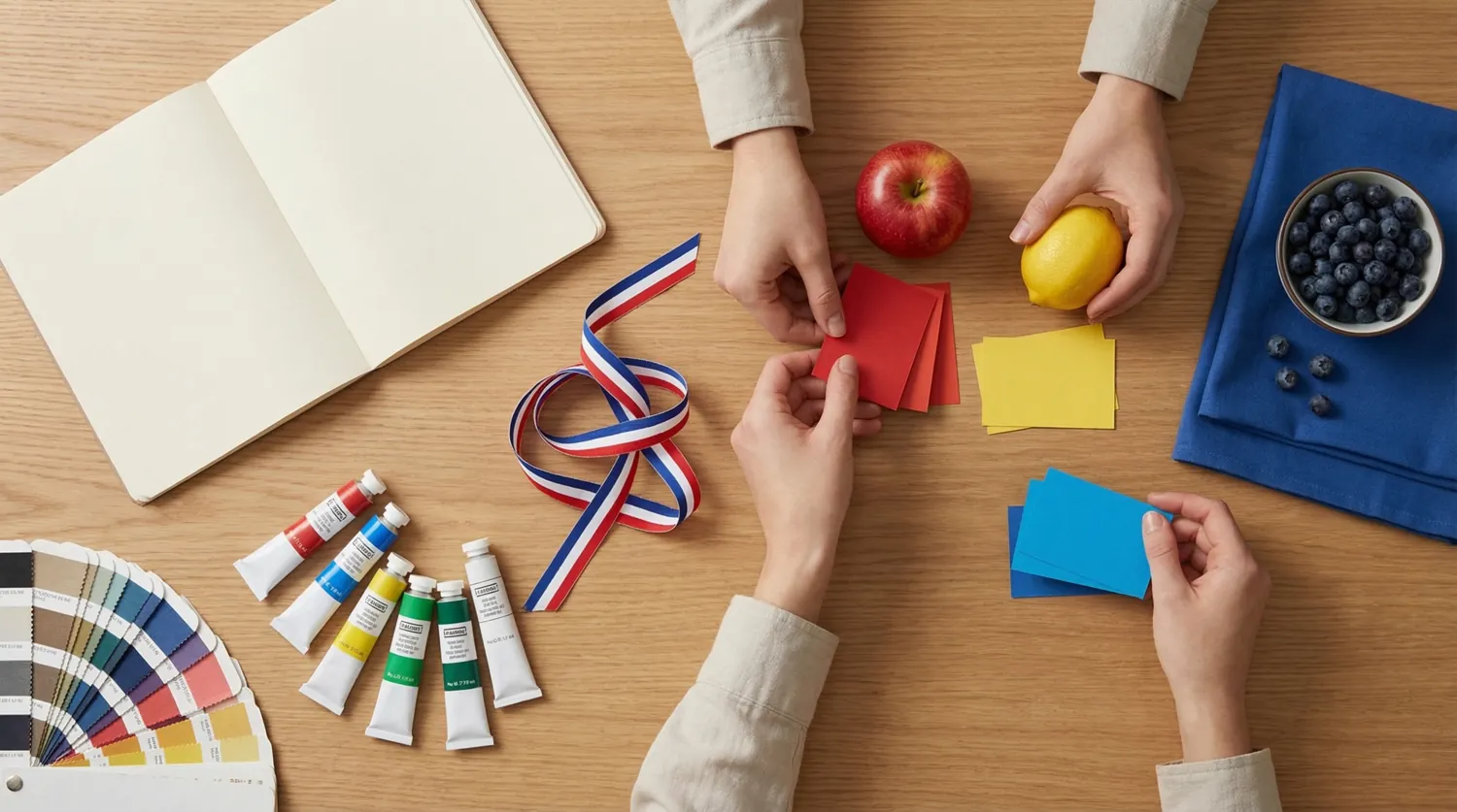 Цвета в описании одежды — не просто прилагательные, это инструмент точной коммуникации с продавцом. Базовые цвета: noir(e) (чёрный), blanc(he) (белый), gris(e) (серый), rouge (красный), bleu(e) (синий), vert(e) (зелёный), jaune (жёлтый), orange (оранжевый), rose (розовый), violet(te) (фиолетовый), marron (коричневый). Обратите внимание на согласование по родам: un pull noir (чёрный свитер) — une veste noire (чёрная куртка).