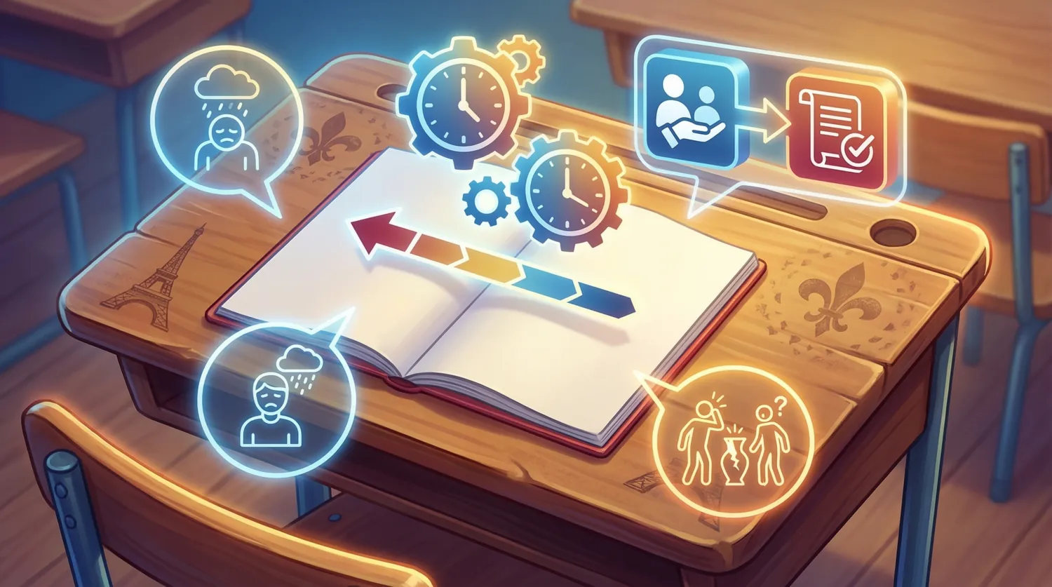 Учите глаголы действия, физически выполняя их. Говорите "Je marche" (Я иду) и идите. Говорите "Je mange" (Я ем) за едой. Моторная память усиливает лингвистическую. Это подтверждено исследованиями Института нейробиологии Макса Планка.